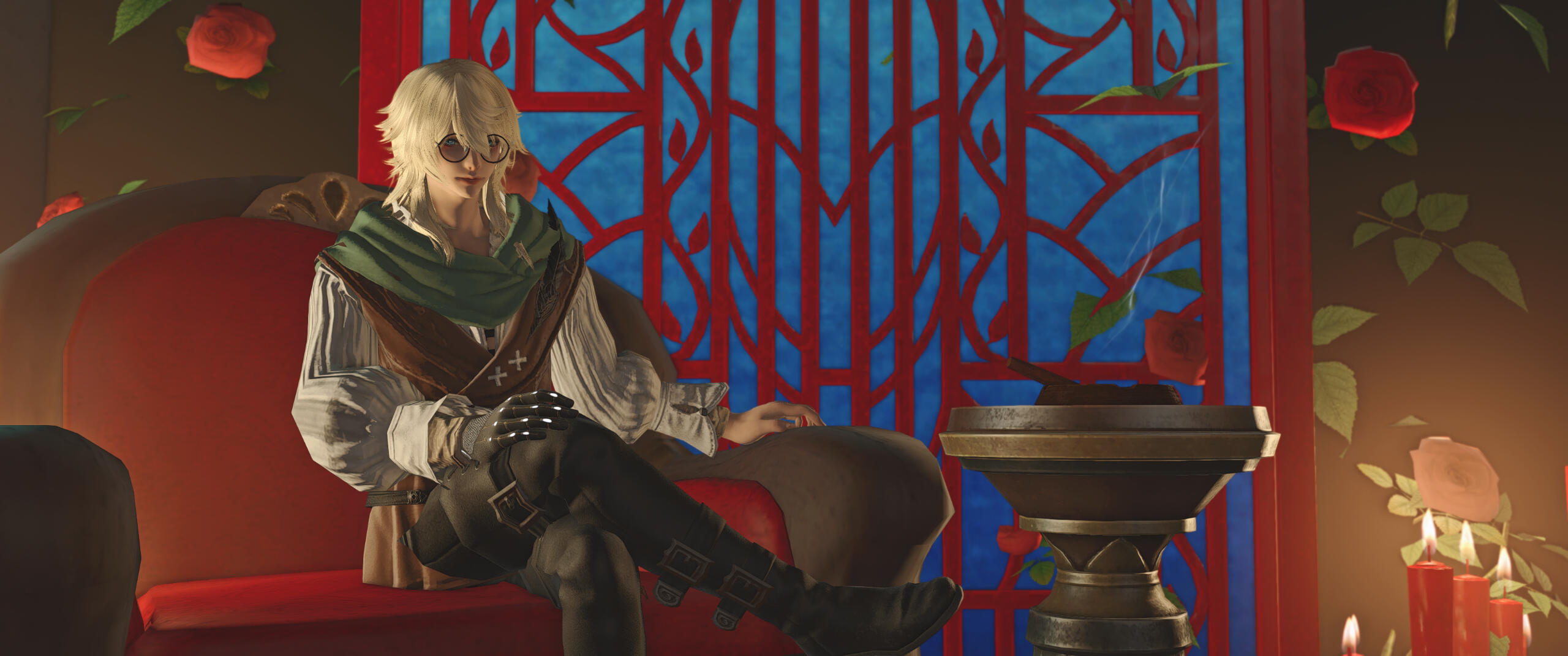 The character closest to my heart. I pour my interest in kink into him, along with personal flavors of mortality, attachment, impostor syndrome, family dynamics, decadence/royalty and the need to be in control. Despite my preference for writing low powered characters, Sedrick has quite a lot of power in his own way in his skill of assuaging high powered entities to do his will. He is my WoL in MSQ canon and my most used character.
